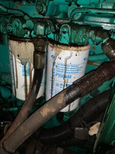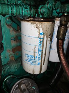 If you have ever noticed spilling out lube oil from filters ( as shown by photos) on your generator set, means the viscosity of lube oil have been extremely deteriorated. Remedial action is to perform generator maintenance service with immediate effect. It is advisable to replace lubricant oil, lube oil filters, fuel filters and closely inspect the condition other highly important areas of the engine by this service routine as well. Always get involved professional generator service providing company for better technical assurance in order to avoid generator repairs.